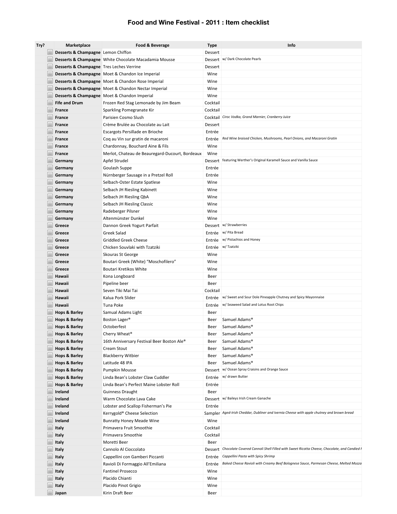 ‘FaW2011 checklist p2’ Published August 16, 2011 at 1275 × 1651 in Food and Wine Festival – 2011 : Item checklist Leave a comment Cancel reply Δ