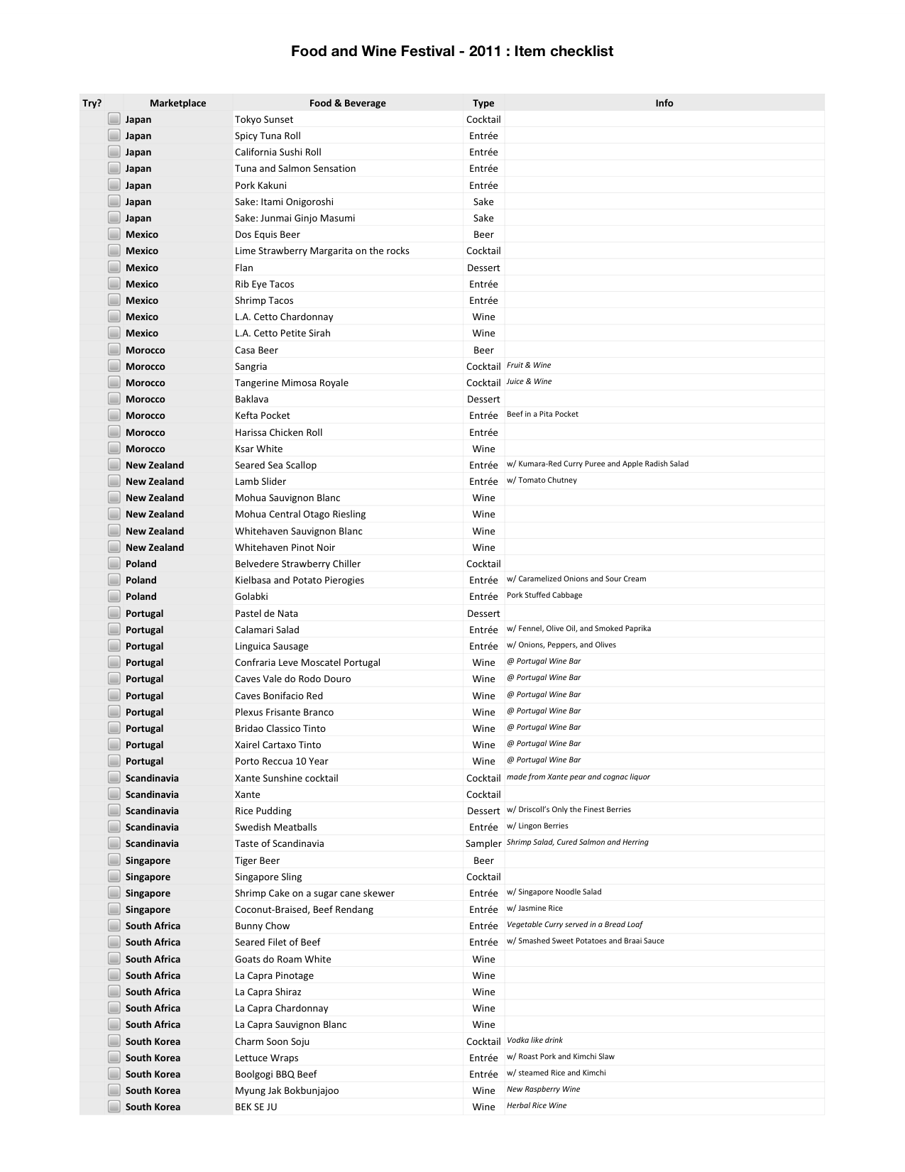 ‘FaW2011 checklist p3’ Published August 16, 2011 at 1275 × 1651 in Food and Wine Festival – 2011 : Item checklist Leave a comment Cancel reply Δ