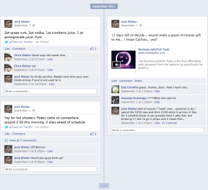 I recently was able to activate the upcoming new Facebook “Timeline” view on my account and thought it’d be useful to do a simple walk through explaining the differences (for good or ill).  This won’t be going live for a few weeks, but I have the run down on the goods. It basically it breaks down into 5 parts – The Cover, Views, Activity Log, Stories, & Ticker.  So read up so you’ll know what’s what when it finally goes live.