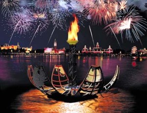 Of course the ending is just as chilling to me. Slowly all the torches come on one by one as the “We Go On” song is sung. Even got to see this once last year during the 3D desert discover (Food & Wine special event) and got neat Micky Mouse kaleidoscope glasses that made every firework and bright light look like Mickey Mouse ears. Amazing.