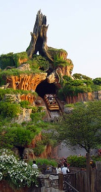 The que isn’t something I experience much now that there is fast pass, but I remember being fascinated with all the invisible talking animals in the treetops and bird houses. It made the long hour wait quite bare able to my young mind. Always something to listen for. Although half of the que is outside, it’s well shaded and relaxing. One inside, the idea that your walking into a cavern and built-in houses is quite nice.