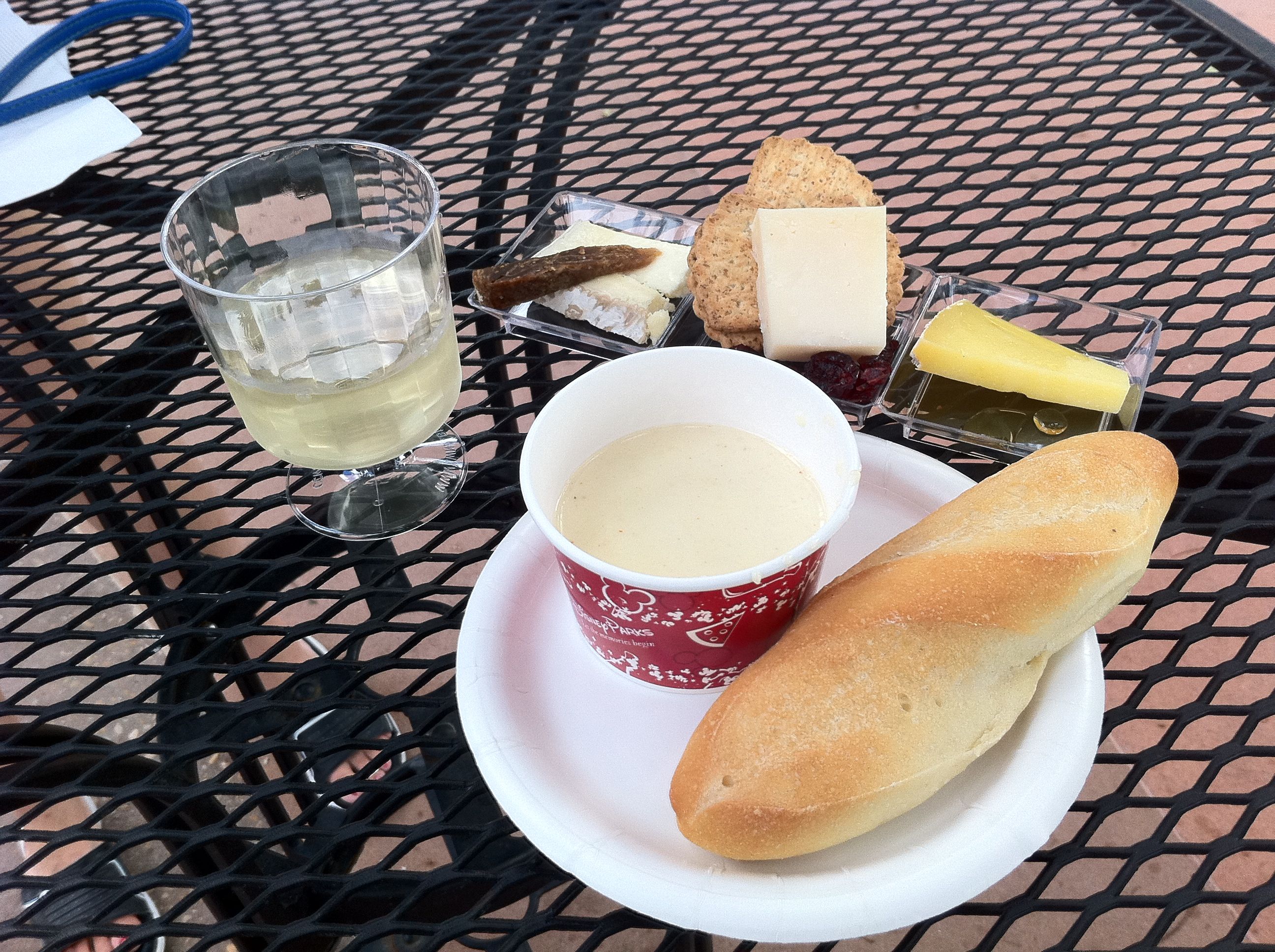 This booth was introduced at last year’s event. I ate here last year as well, and I think the fondue was a bit better last year. I’m not sure if I just got a bad batch, but this year it was a bit more gritty than I remember it being. It was still tasty and light, but seemed a bit less mixed. The cheese plate was very nice, with the additions of honey and fig accented the selection. The resling was crisp and light… like rieslings are. It is questionable that “Cheese” is a country, but it’s still a rather tasty booth.