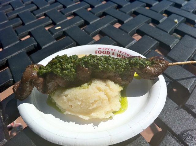 Just like the Belgium and Hawaii booths, this was a repeat destination. The grilled beef was always cooked to a nice moist level, and chimichurri sauce was a very fresh blend of all wonderful herbs to offset the meatiness of the, well… meat. I didn’t care all that much for the pureé, but then not normally a fan of mashed potatoes. And how can you resist something on a stick!