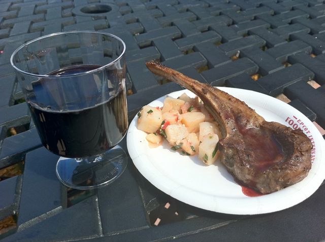 I’m not sure if it’s because it has it’s own built in handle, or if was just that good. The lamb was juicy and peppery and the reduction was everything you’d want from wine in food form. The potato goat cheese thing was… it was good, but didn’t seem to go quite right with the lamb. The shiraz wasn’t too dry for my tastes (heavy tannin wines tend to put me off some what), had a dark fruit flavor and did well with the lamb.