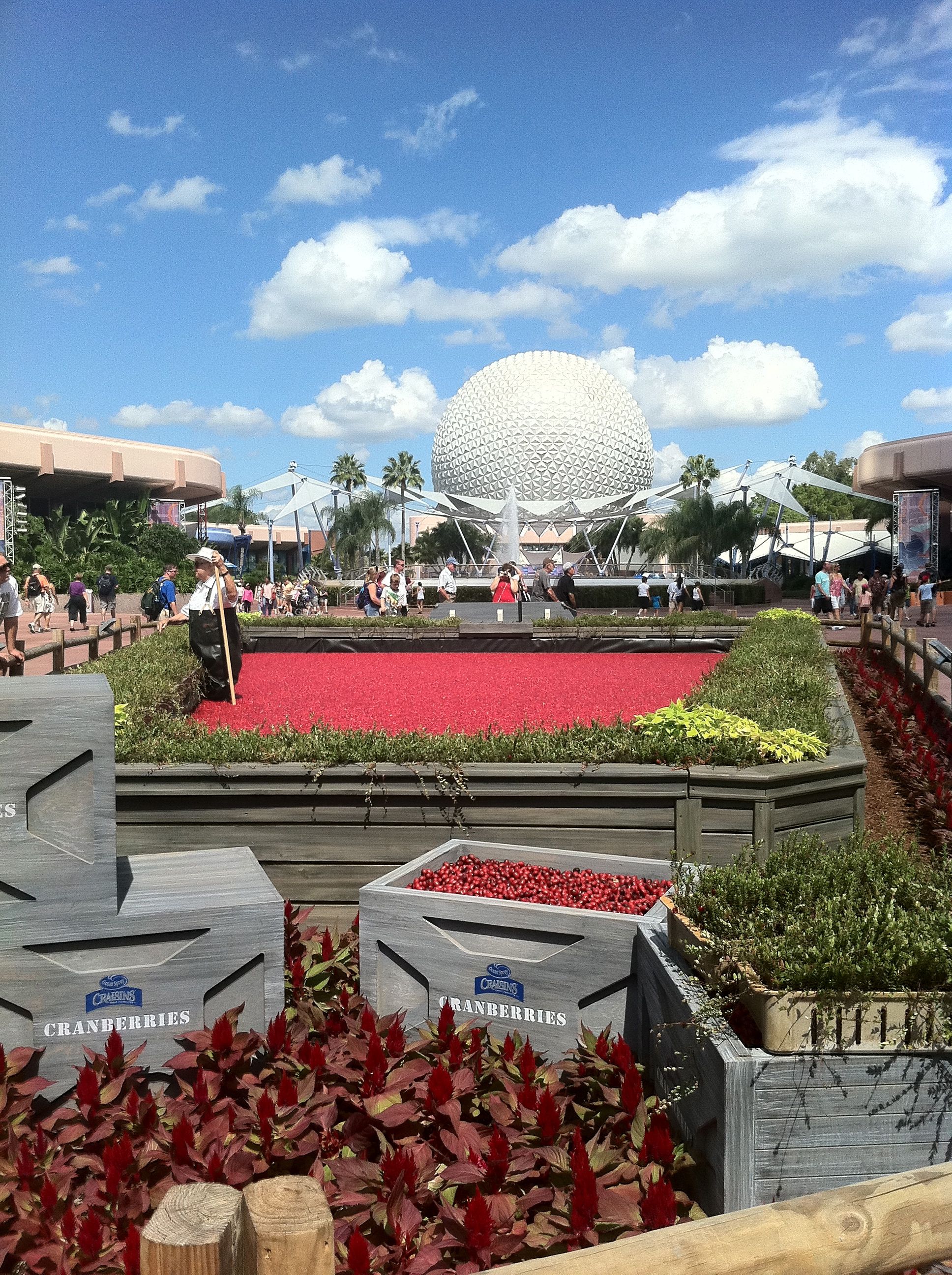 One thing you can’t miss (well assuming you come in the main gates, not the back way the Boardwalk resorts get to use) is that Ocean Spray sponsors this year’s Festival. And what better way to showcase it than with a huge cranberry bog. Located righter after the Fountain of Nations, and before you get to the World show case booths, is a huge display. Typically you’ll find someone standing in there, knee deep in water, happy to explain why they flood the cranberry lands to harvest, how they float… basically anything you can think of asking about Cranberries. And no you’re not allowed inside the bog. On the flip side they do have handy little samples of crasins that they were giving out, so bonus!