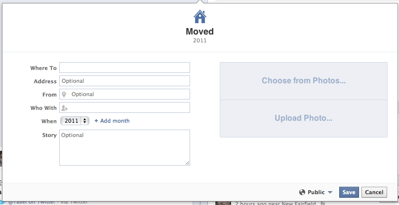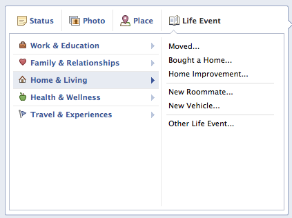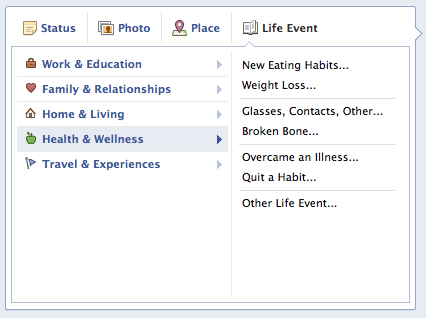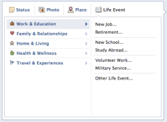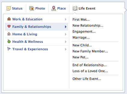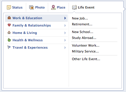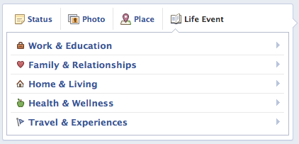 A while back I did a blog post on Facebook’s new Timeline feature. Since then it’s been officially rolled out and expanded a bit. One feature of the Timeline that I did not cover was that of the Life Event. I’m here to fix that since it seems that Facebook is trying to have your entire life’s big events for all your friends, family, and in some situations the public, to see in one spot. And they have made it pretty easy to let you do this.