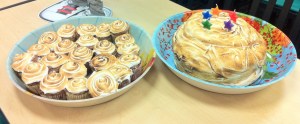 I ended up making two things. A layered angel food cake with original angel food cake and chocolate espresso angel food cake and chocolate espresso cupcakes both toped with a marshmallow frosting that was lightly toasted. The recipes for everything is at the bottom of this post.