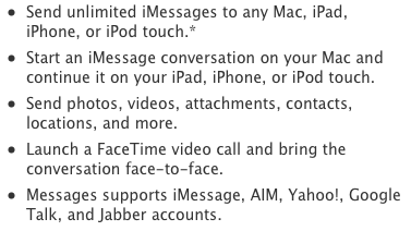 So what’s different about Message over iChat? The answer is surprising not much. iChat was already a pretty solid application. Buddy list is kept in a separate window with all the chats together in their own window. This new version expands the software to include iMessage and FaceTime functionality.
