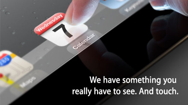 - The invitation appears to indicate we are going to get two devices. One to see and one to touch. Perhaps an indication that we are going to see a new product but won’t be able to get it right away? And one that you will be able to buy right away? My guess as to the LTE iPad and a set-top AppleTV would fit that.
