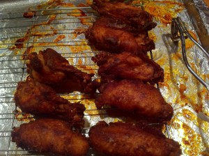 And now it’s time to share the recipe… Well the current version at least.This is one of my “old” recipes. And much like things I’ve been cooking forever, it’s gone through lots of versions. Back in college I used to cook them entirely in the hot sauce. This made for some spicy meat, but also had a tend any to make them fall apart. In the second version, I tried to make a breading from the sauce but that ended up with a wing that had way too much “bread” and not enough wing. The current version is more the traditional “sauce” style, but still with the heat distributed over 3 different layers.