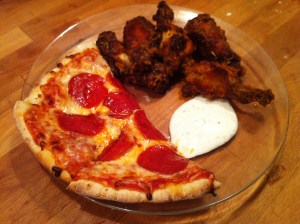 Add the chicken to the sauce. Toss to coat. Each Wing will take about 1 Tablespoon of sauce to cover. Serve hot with some celery and blue cheese, or along with some pizza.